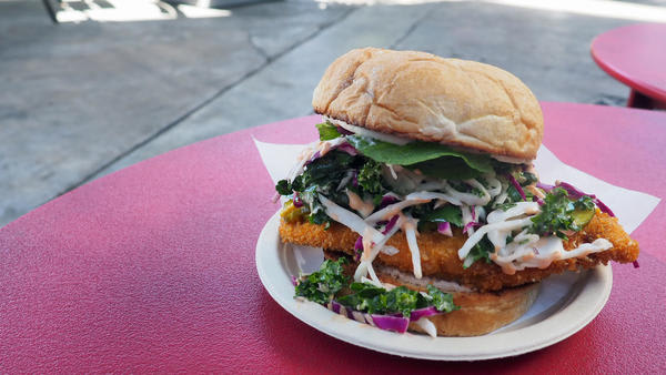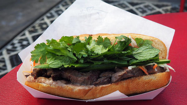 Bahn Oui is the passion project-turned-full-time-everything of chefs Casey Felton and Armen Piskoulian. The two met at the Tasting Kitchen in Venice, where Felton prepared fish and Piskoulian was the pasta guru. Felton previously worked at Providence and Red Medicine; Piskoulian cooked at Michael’s in Santa Monica. The two ended up in Australia, where they fell in love with the banh mi sandwich. They came back to the U.S. to work at Scarpetta, then decided to open their own business.